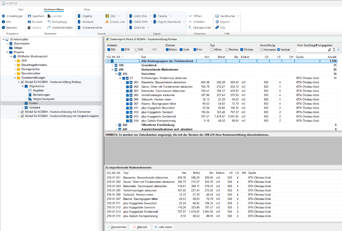 • Export DA 82 für GAEB 90/2000/XML 3.3