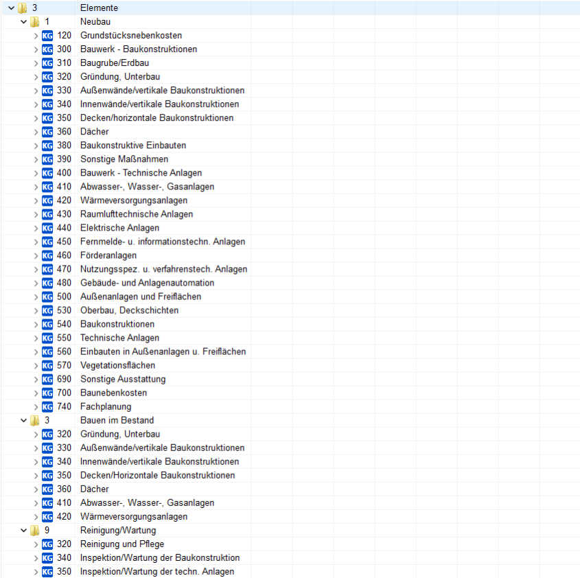 - Kostengruppen-Zuordnung nach aktueller DIN 276