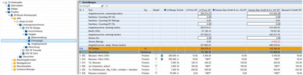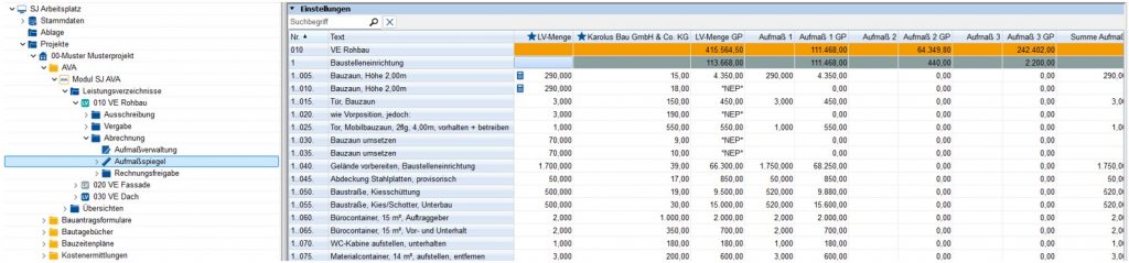 Überarbeitete Übersicht von Preis- und Aufmaßspiegel