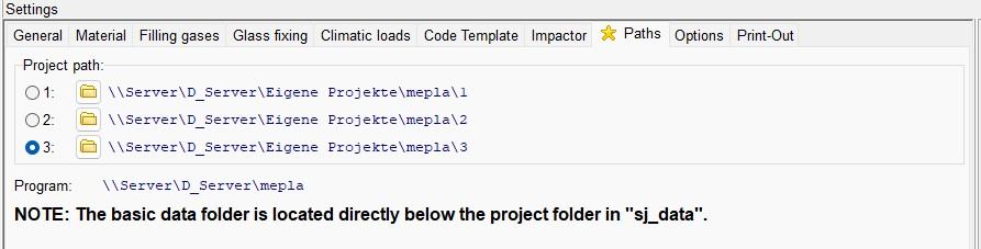 For a better overview, 3 different project paths can be set. The path can be easily changed with a mouse click. This allows existing projects to be better structured.