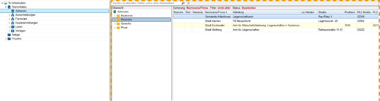 Die Adressen befinden sich in den sogenannten Stammdaten und beziehen sich immer auf den eingestellten SJ Arbeitsplatz.
