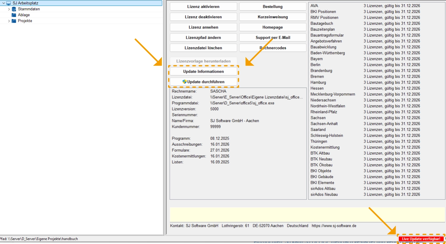 Mit der Live-Update-Funktion stellen wir Ihnen kostenfrei Programm-Updates sowie Aktualisierungen der Bauantragsformulare zur Verfügung.