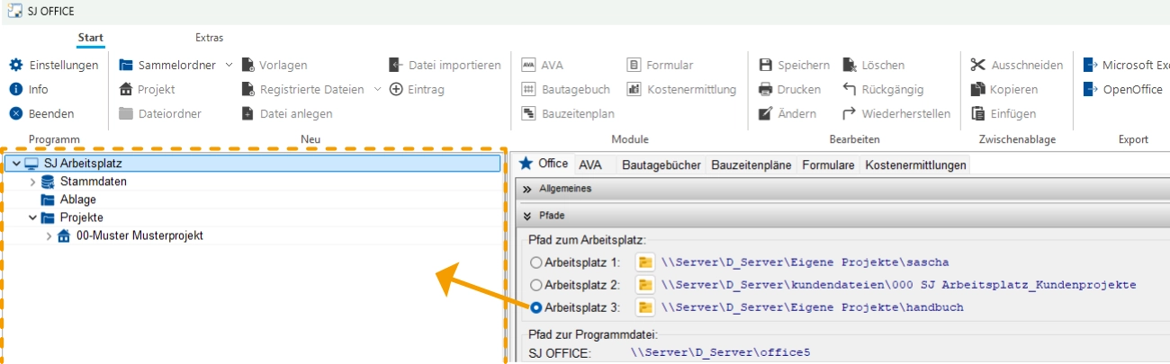 Mit SJ OFFICE haben Sie die Möglichkeit, bis zu drei verschiedene Projektpfade zu hinterlegen. So können drei unabhängige SJ Arbeitsplätze angelegt und bearbeitet werden.