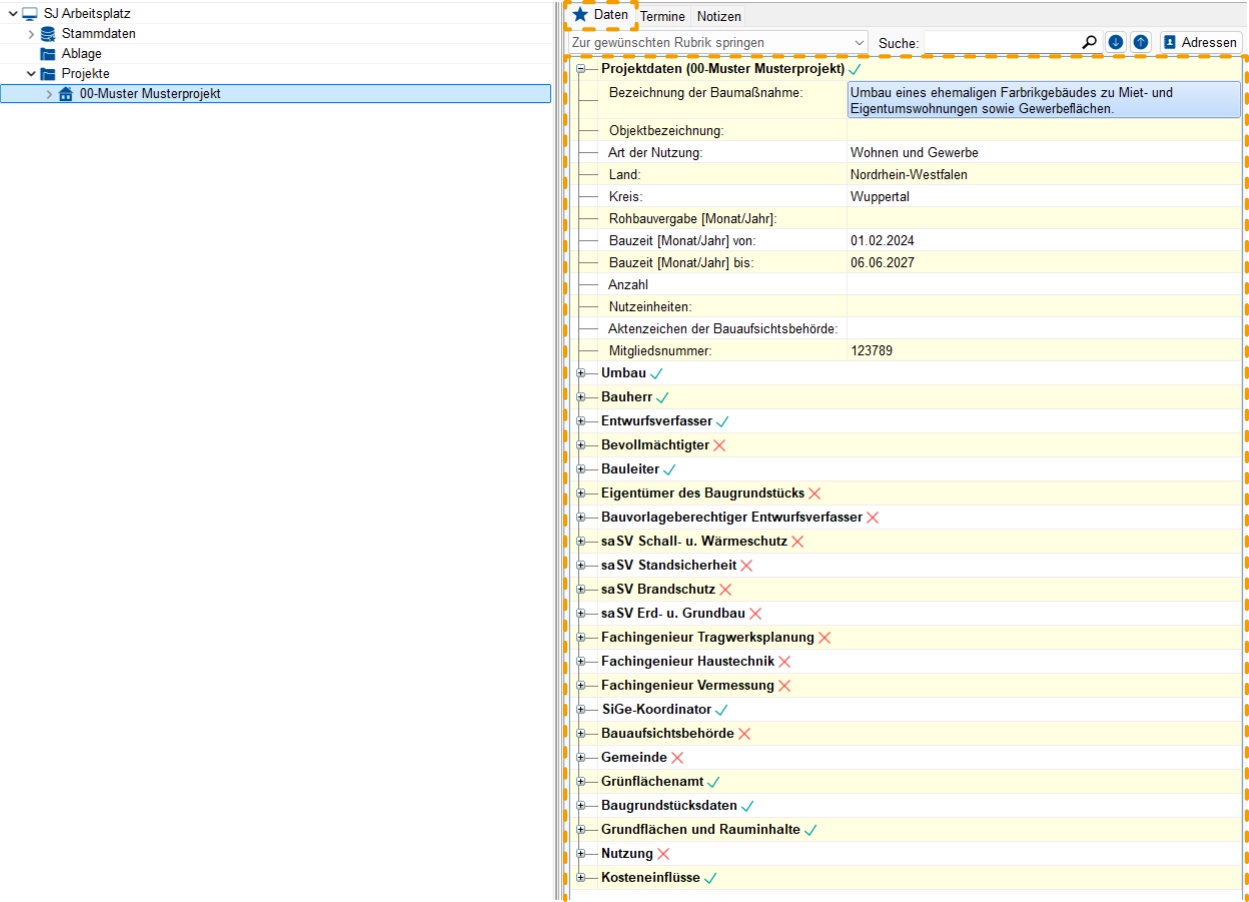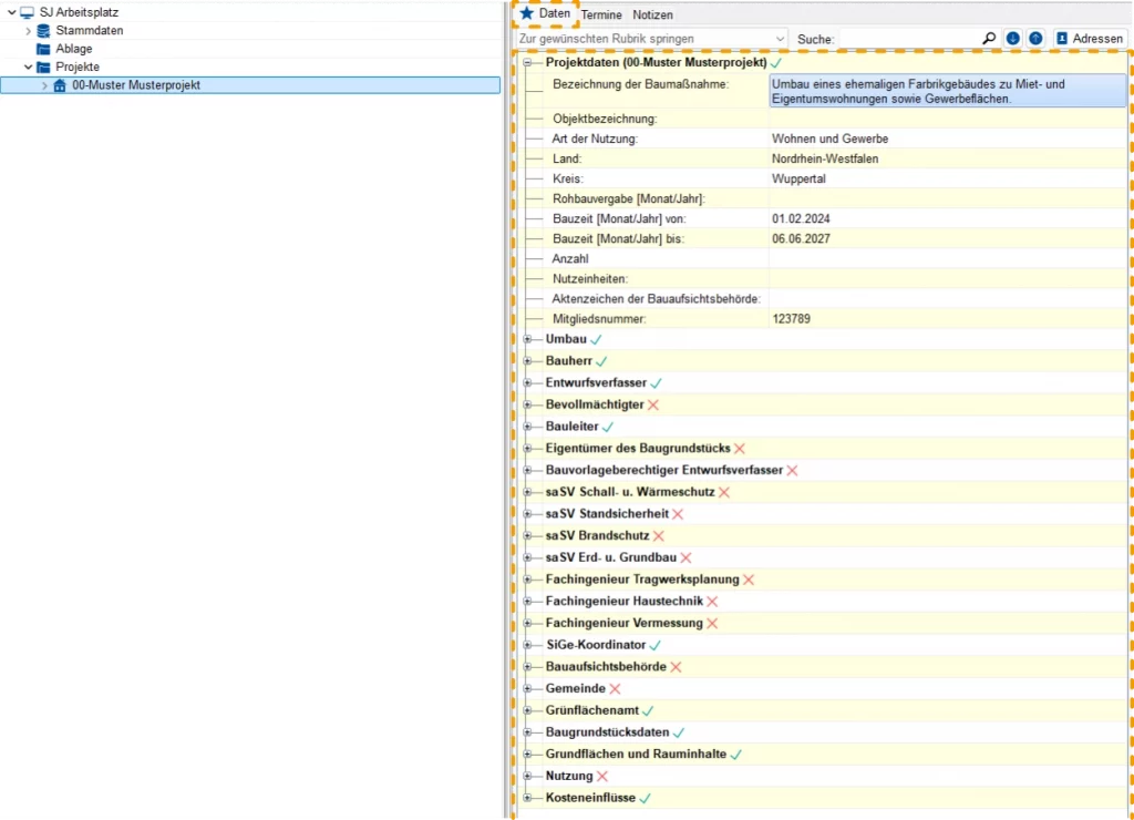 Alle SJ Module sind mit der Projektverwaltung verknüpft. Werden Projektdaten angepasst, erfolgt eine automatische Aktualisierung der Projektdaten innerhalb der SJ Module.