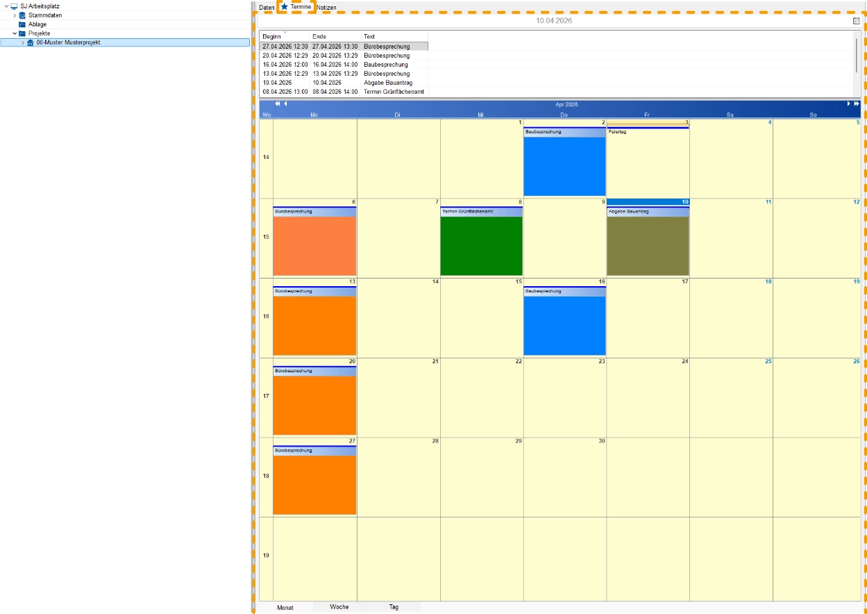 Sie haben dort die Möglichkeit projektbezogene Termine einzutragen und zu verwalten.