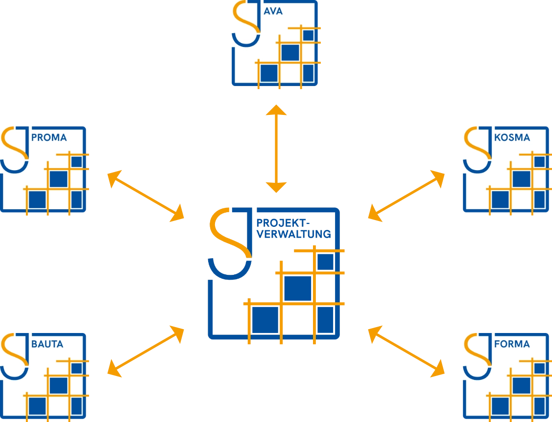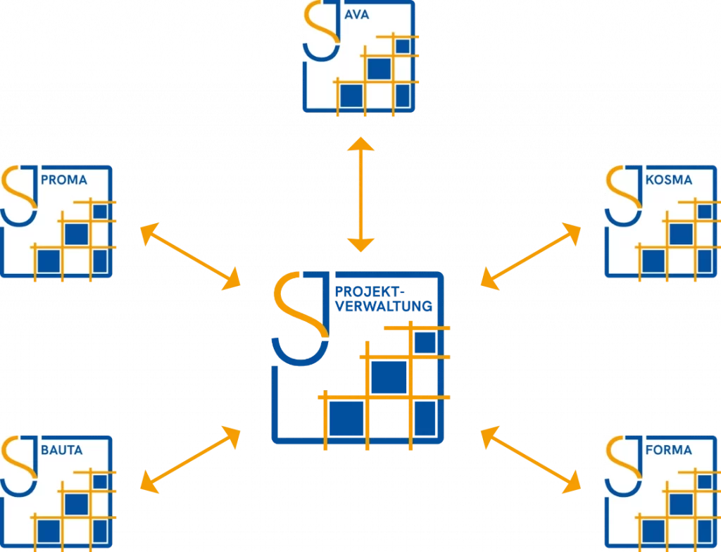So kann z. B. aus einer Kostenschätzung in SJ KOSMA eine Ausschreibung in SJ AVA erstellt werden, um dann im nächsten Schritt aus der Ausschreibung einen Bauzeitplan im Modul SJ PROMA zu erstellen.