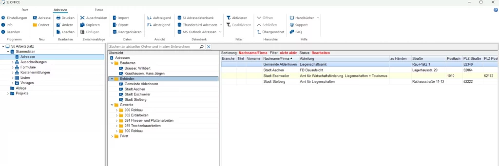 Als Hauptanwendung vereint SJ OFFICE eine Projektverwaltung sowie