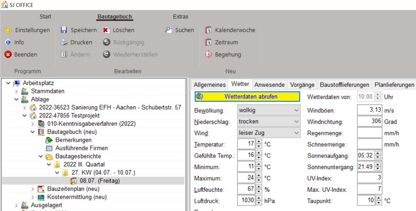 Bautagebuch: Die Wetterdaten können stundenaktuell online abgerufen werden.
