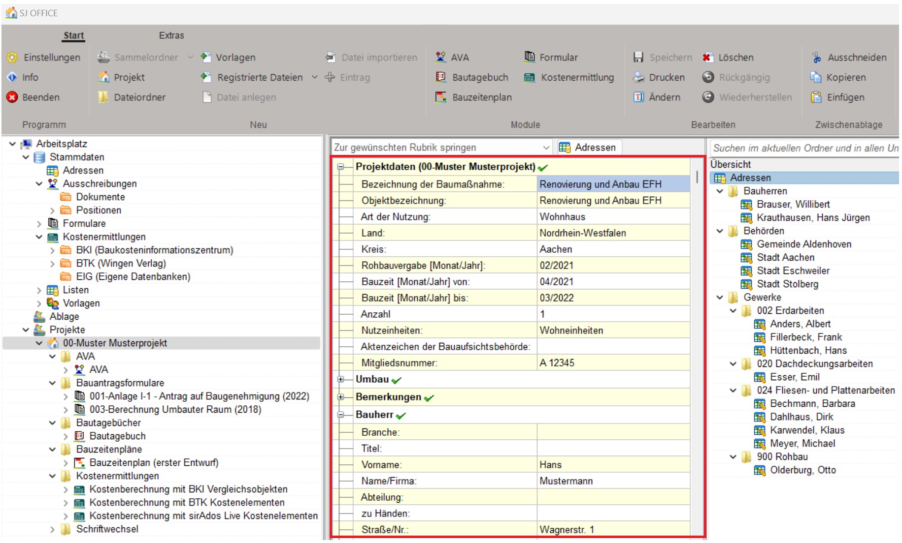 - Übergabe von Adressen in die Projektkarte und die weiteren SJ Module