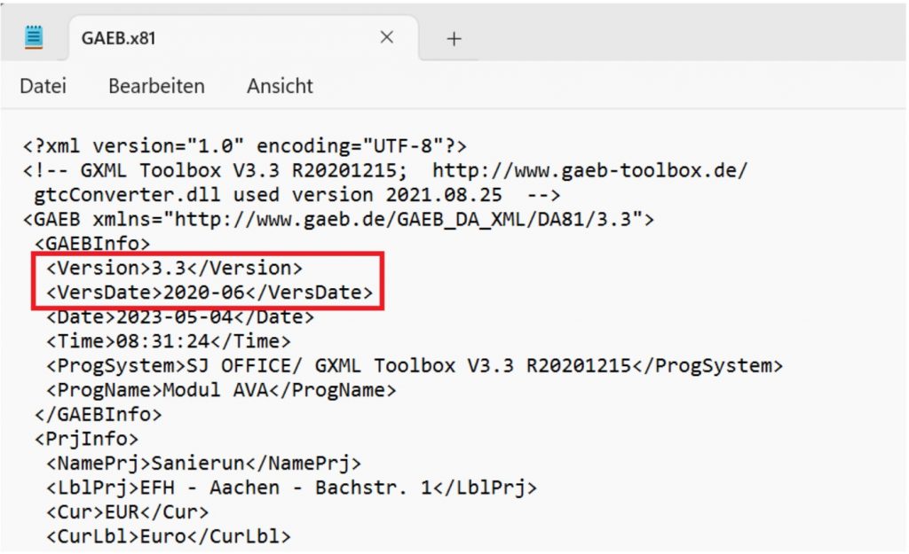 Die Version einer GEAB-Datei erkennen Sie wie folgt: